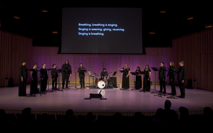 En Masse is an electroacoustic composition for choir and drum which navigates the threads of interconnection among individuals, communities and ecosystems and promotes a culture of care amidst the climate crisis.