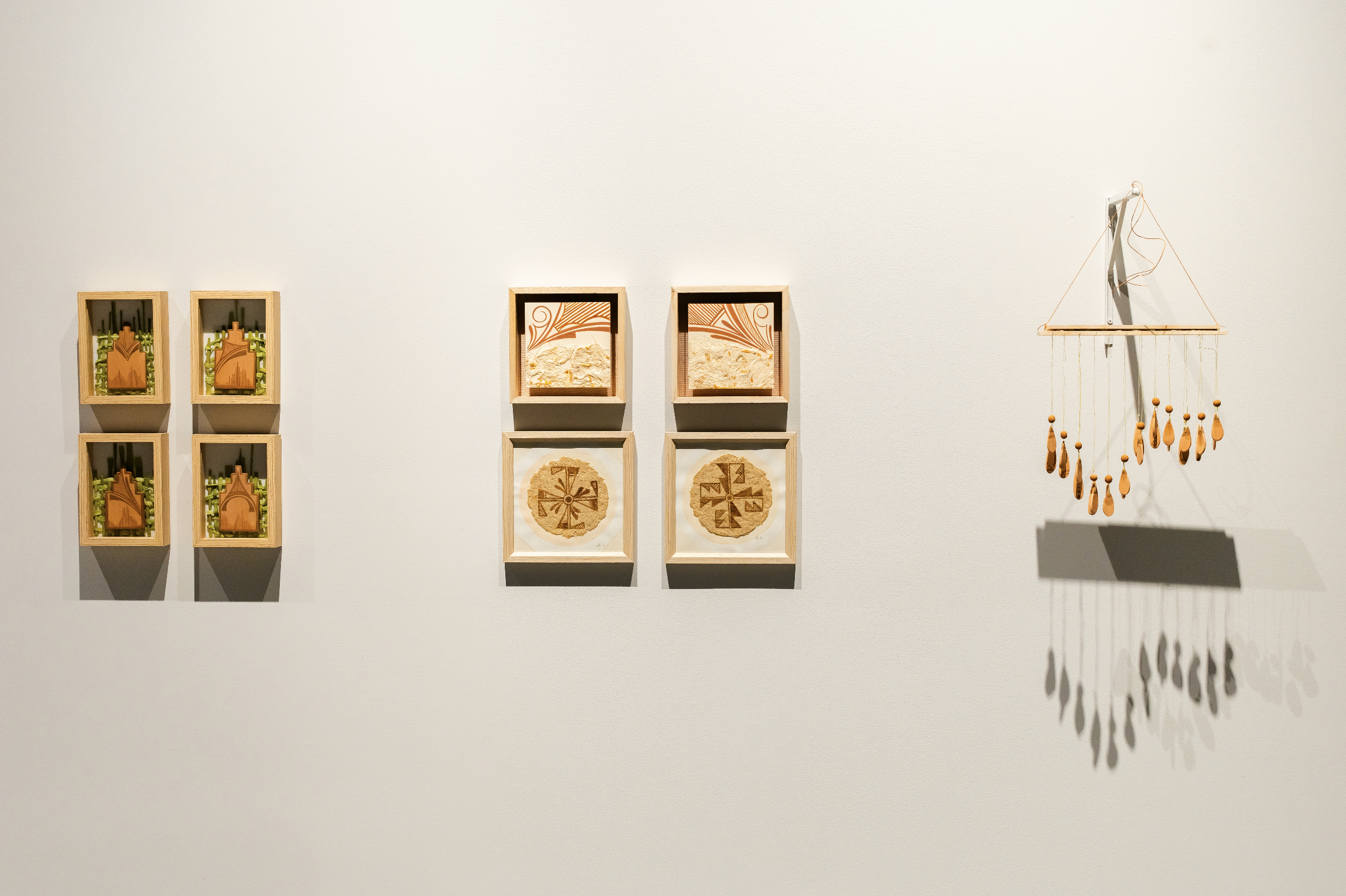Yeh’chuna:we (Breathing in), 2025, natural clay, yucca plant fibers, natural pigments, 5" x 7" (x6).